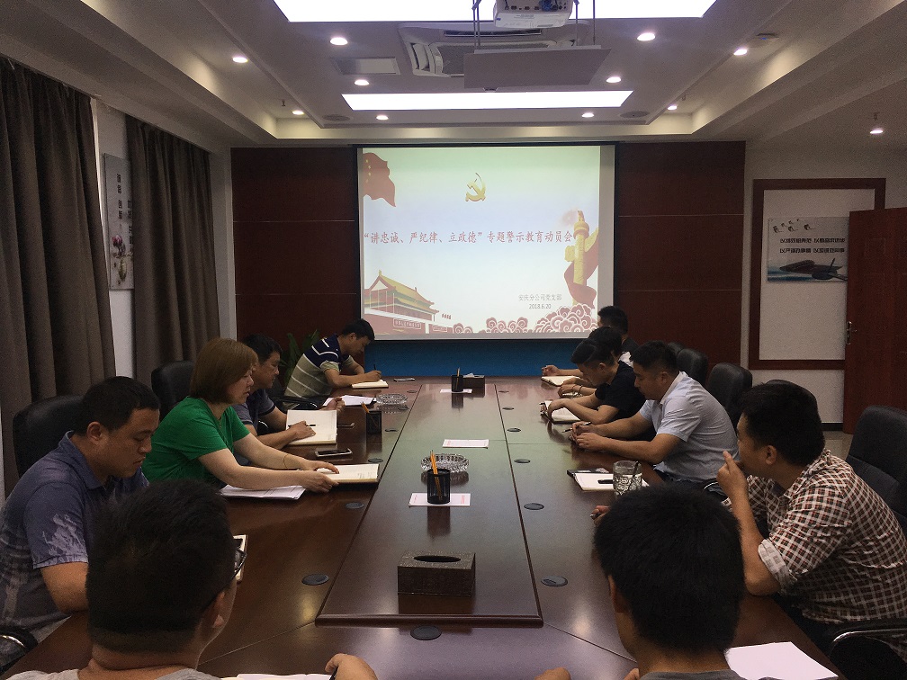 6月20日下午,安慶分公司黨支部召開(kāi)了“講忠誠、嚴紀律、立政德”專(zhuān)題警示教育動(dòng)員擴大會(huì )議,分公司全體員工參加動(dòng)員會(huì )。