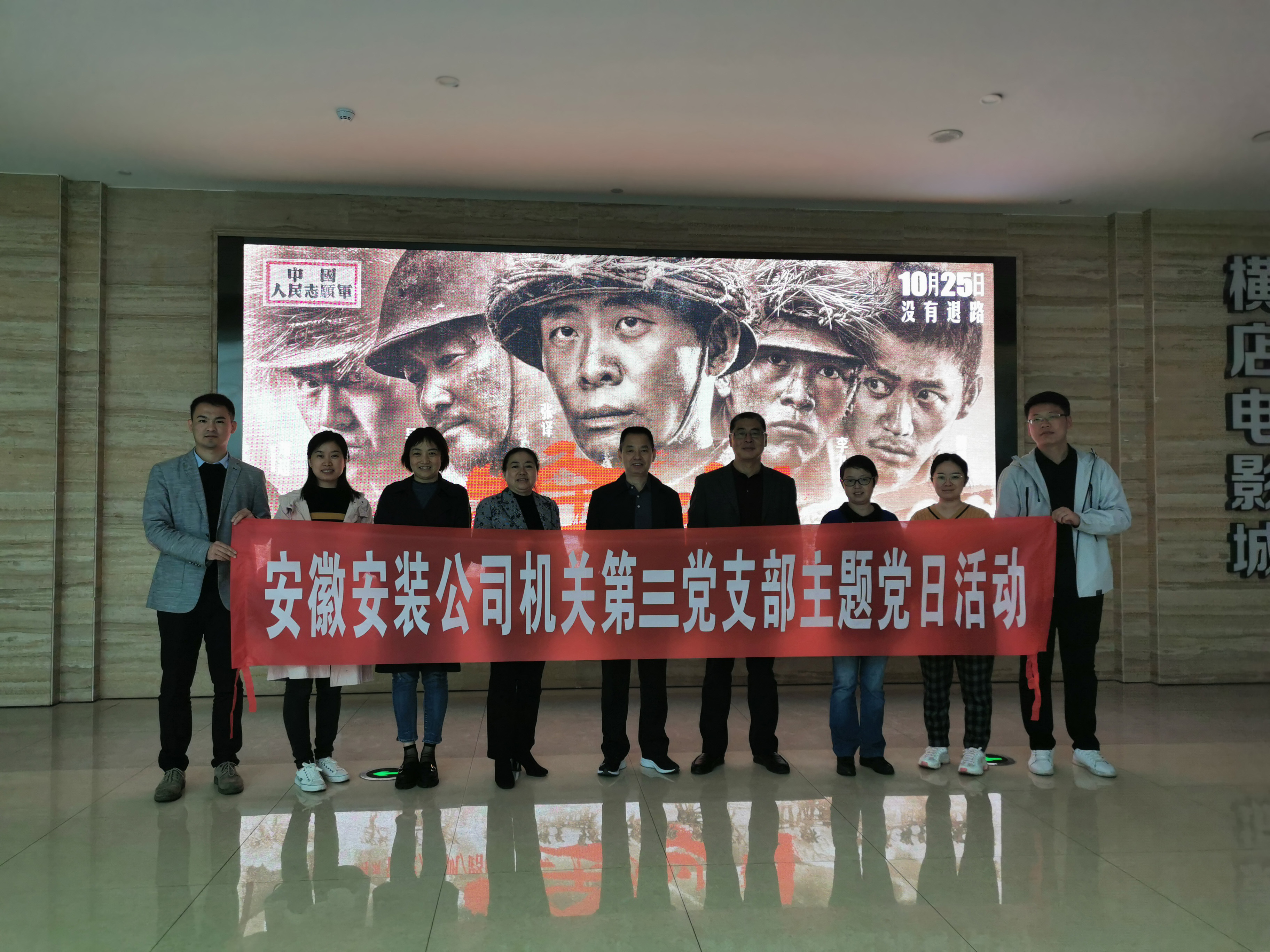 為紀念抗美援朝偉大戰爭,向中國人民志愿軍致敬,2020年10月26日,機關(guān)第三黨支部組織全體黨員觀(guān)看抗美援朝主題電影《金剛川》。公司黨委書(shū)記、董事長(cháng)胡六中,副總經(jīng)理李原及總會(huì )計師張元斌以普通黨員身份參加。