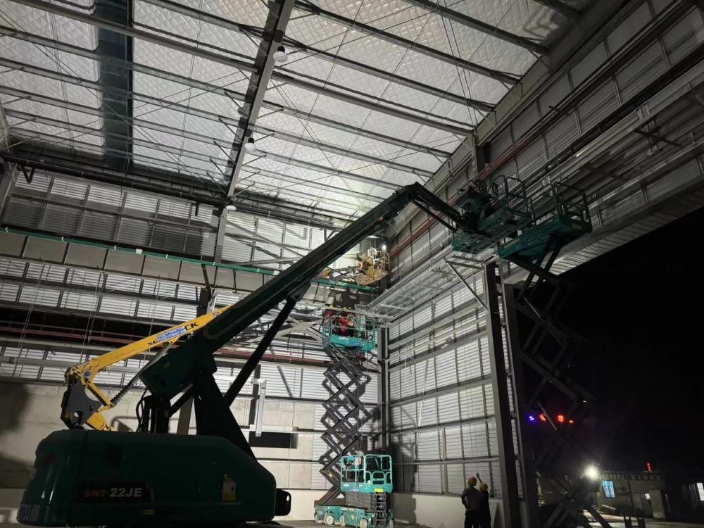 建工安裝合肥分公司施工內容涉及2#重鋼車(chē)間主次構安裝、圍護系統、門(mén)窗、防火涂料、通風(fēng)氣樓和機電安裝工程(裝飾裝修、工藝管線(xiàn)、消防、給排水、電氣、通風(fēng)空調等)。為保質(zhì)保量完成施工任務(wù),分公司派駐分管領(lǐng)導現場(chǎng)駐點(diǎn),項目管理團隊日夜跟進(jìn),施工人數達到100多人,曲臂車(chē)、登高車(chē)等各種現場(chǎng)施工機械達60余輛。本項目留給機電安裝工期緊任務(wù)重,項目全體人員日夜奮戰,最終刷新15日大面完工耀眼戰績(jì),為基地順利投產(chǎn)奠定堅實(shí)基礎。