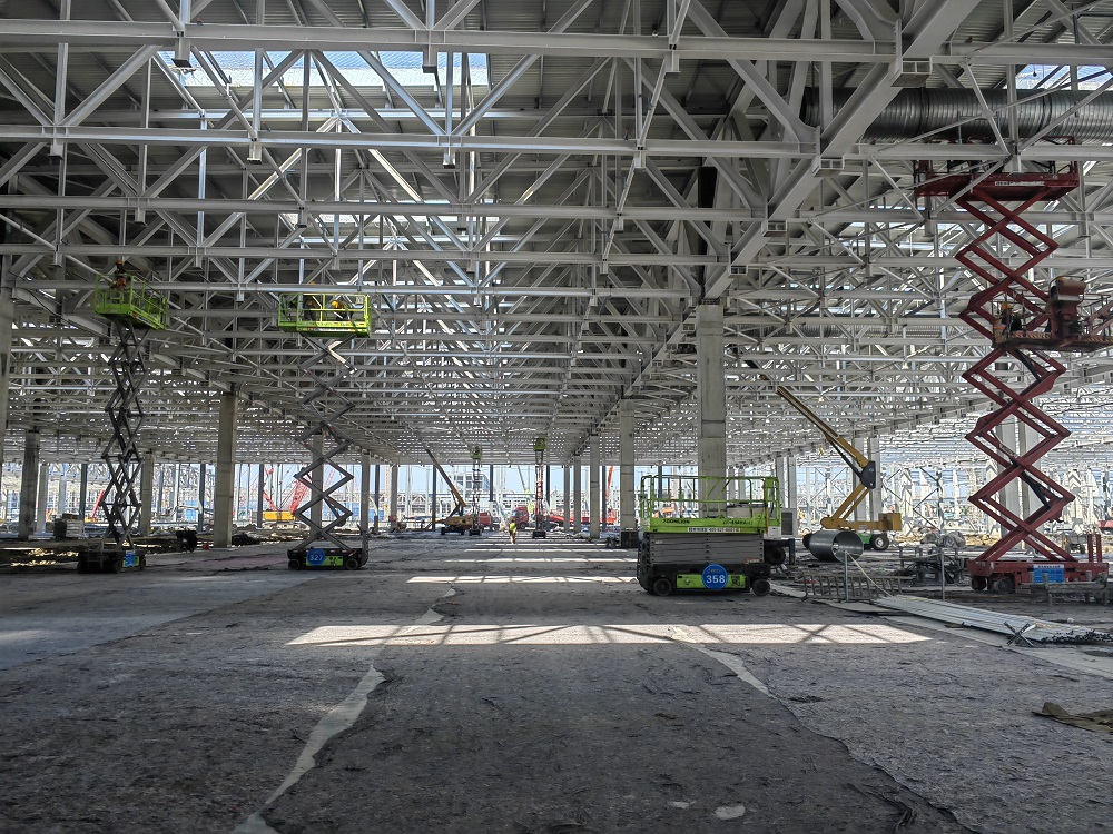 項目部全體管理人員緊抓施工節點(diǎn),緊跟土建、鋼結構單位施工進(jìn)度,全力統籌人、材、機合理高效入場(chǎng),根據現場(chǎng)施工情況逐步優(yōu)化各專(zhuān)業(yè)施工方案,全力推進(jìn)施工進(jìn)度。目前,車(chē)間一整體防雷接地已完成60%,QA辦公樓預埋已完成90%,隨著(zhù)土建單位工作面的交接,車(chē)間一5區、6區正在進(jìn)行成品支架、虹吸雨水管道、排水管、通風(fēng)管道等施工作業(yè)。