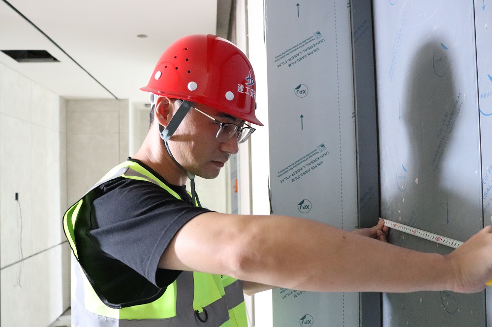 肥西縣鄉村文化旅游配套提升項目,技術(shù)負責人,湯楊,正在核查廳門(mén)安裝精度。丈量每一寸,精準每一毫,奮楫篤行,臻于至善,一路走來(lái)淌下的汗水,是對工作的熱愛(ài)與堅守。我在項目堅守,我為祖國慶生。
