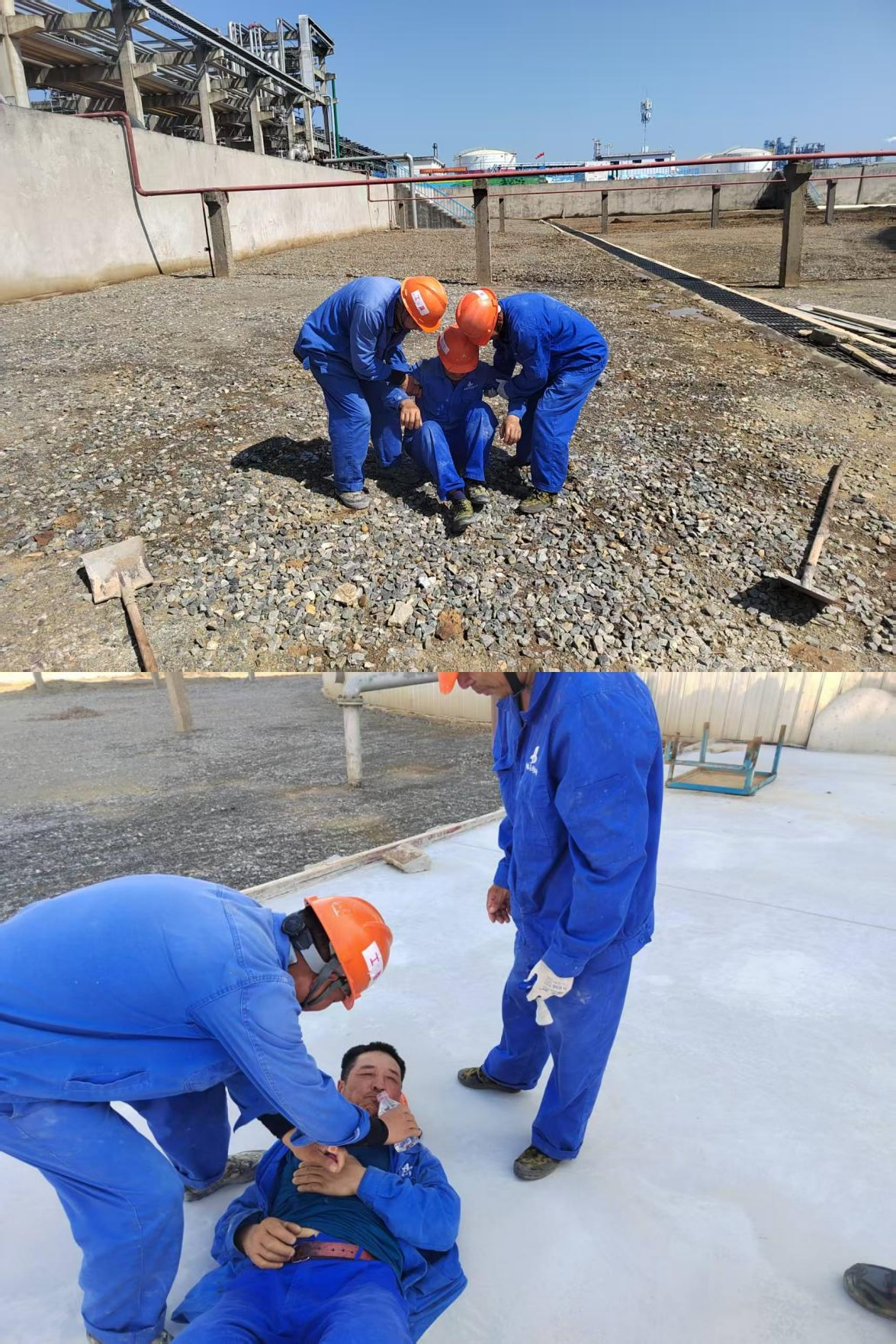 為進(jìn)一步提升應急處置能力,安慶石化儲運部北山罐區地坪防滲項目現場(chǎng)開(kāi)展了中暑應急演練。演練模擬戶(hù)外作業(yè)人員突然暈倒的緊急場(chǎng)景,指揮參演人員分工協(xié)作,有序開(kāi)展現場(chǎng)急救與送醫治療。整個(gè)演練過(guò)程僅用時(shí)30 分鐘,便高效完成。演練結束后,應急演練領(lǐng)導小組立即組織總結會(huì )議,各小組匯報情況,安全負責人總結不足,為后續應急工作積累了寶貴經(jīng)驗。